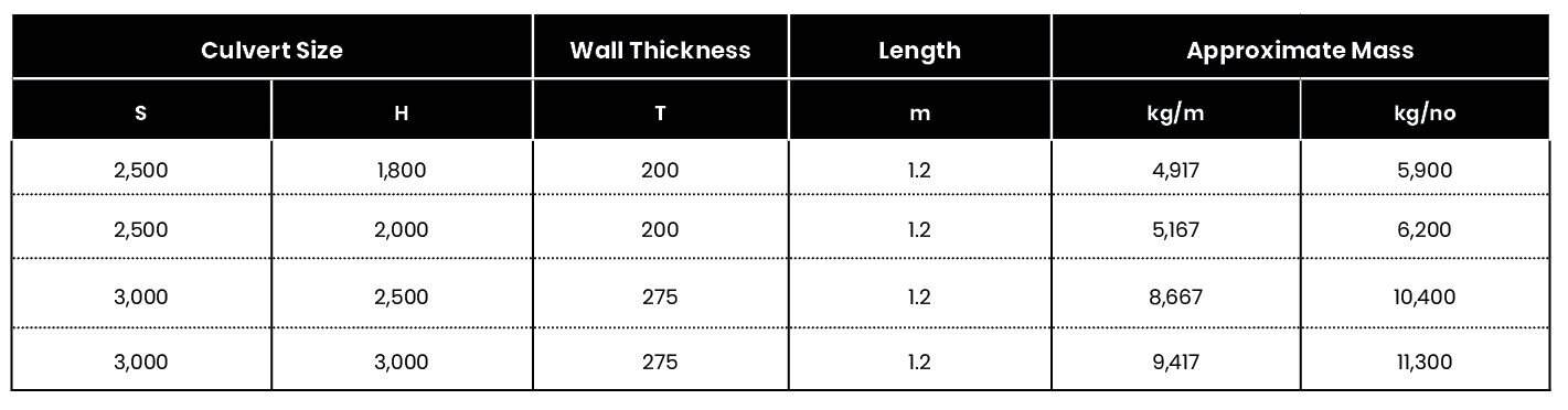 - Dimensions and thus the mass of the culverts are subject to change without notice.